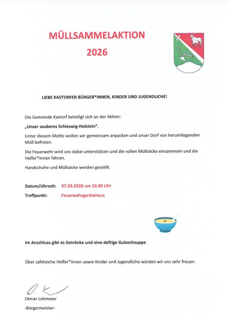 Wir unterstützen die Müllsammelaktion der Gemeinde am 07.03.2026 ab 10:00 Uhr!